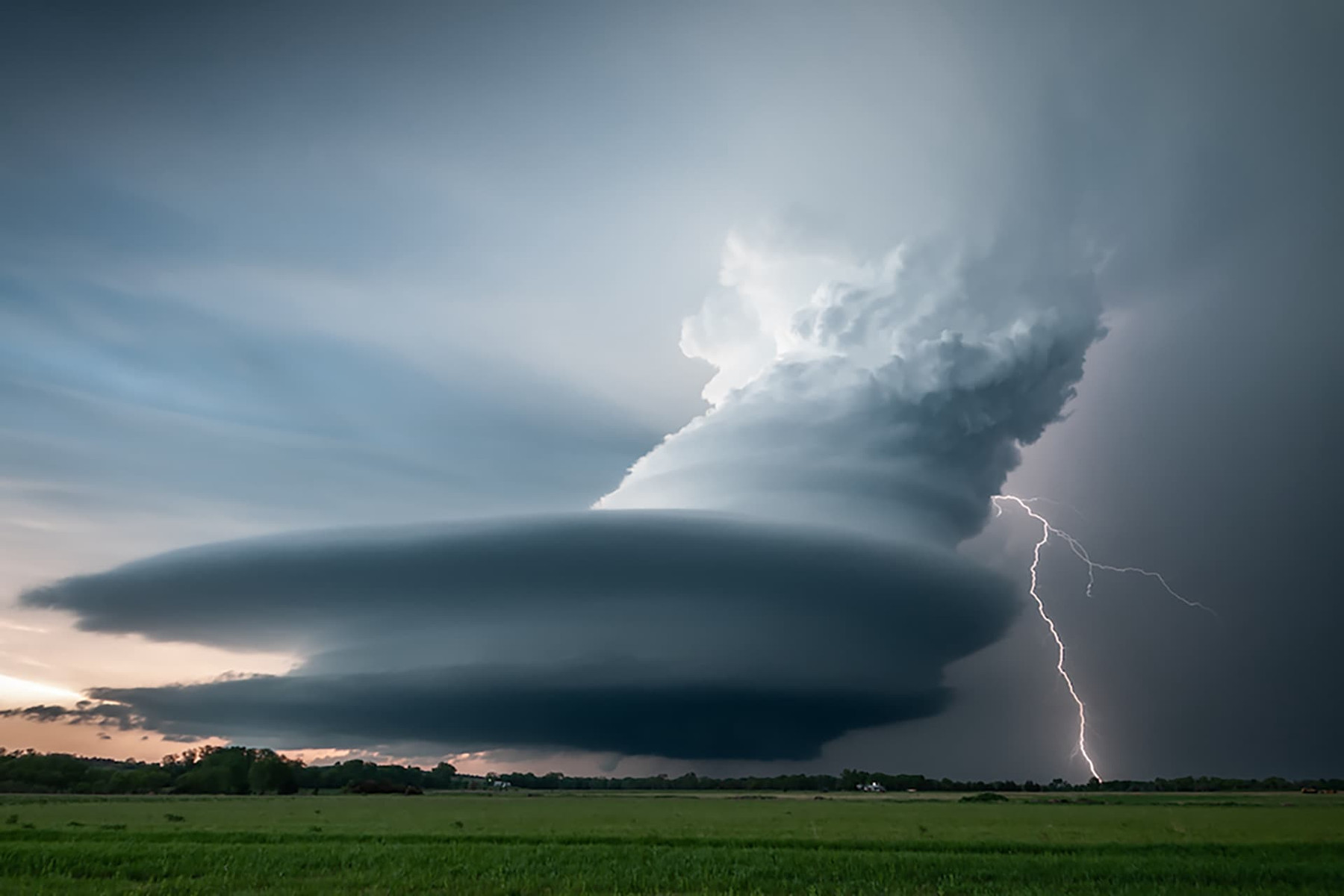 A supercell is an elite type of thunderstorm accompanied by dangerous weather conditions including large hail, damaging winds and, sometimes, tornadoes.